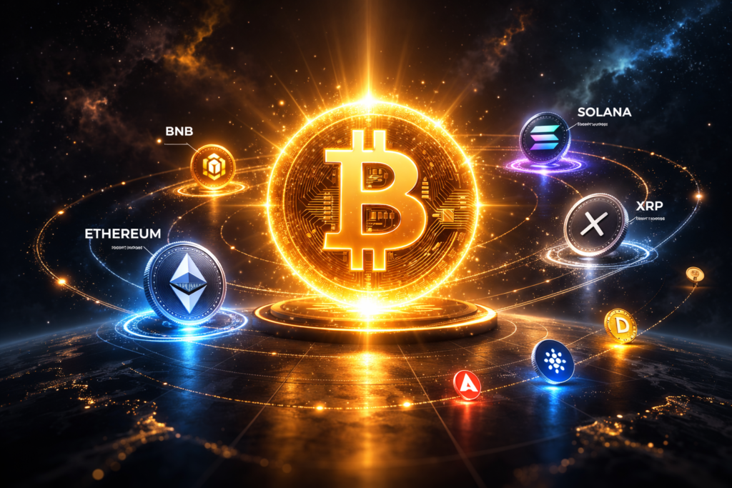 Examples: Bitcoin (BTC), Ethereum (ETH), BNB, Solana (SOL), XRP